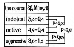 Fig. 3. Serum ß2-microglobulin and types of courses in