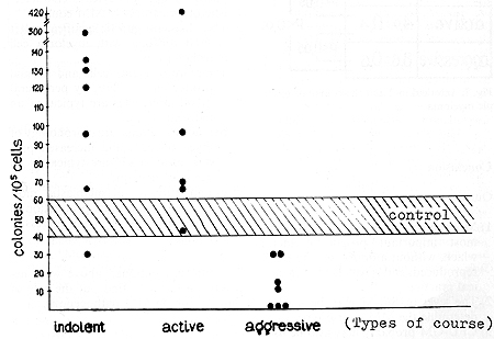 in agar culture in active myeloma ranged from 42 to 420 per 105