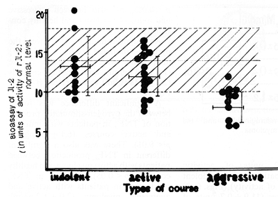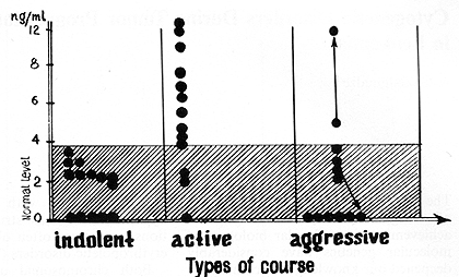 in patients with indolent and active courses (6.1 +- 1.1 ng/ml;