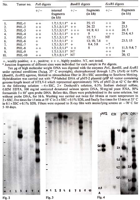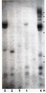 Fig.1. Southern analysis of PstI digests of baboon lymphoma