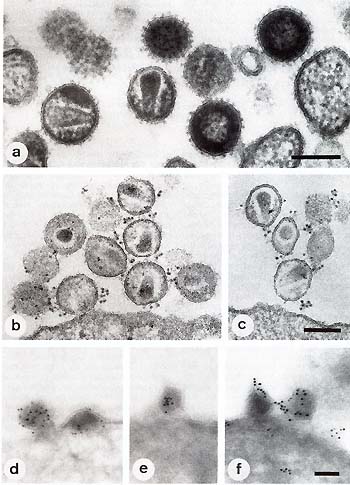 Fig. 1. a Ultrathin sections of LA V /HTL V III particles after