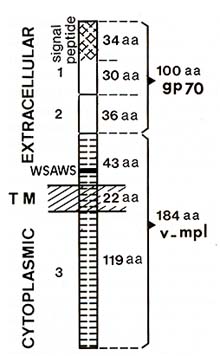 domain of v-mpl possesses, 13 amino acids upstream to the membranespanning