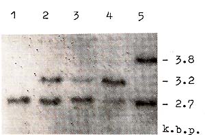 (BC), identified by means of PvuII restriction of DNA samples, Southern