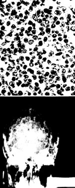 Hematoxylin and eosin, X 430. b Plain skull radiograph for