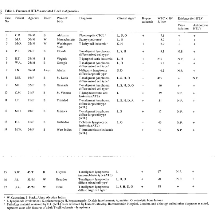 W A, Gallo RC (1982) Adult T-cell lymphoma-leukemia in blacks from