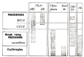 of cell surface HLA-DR, HLA-ABC and glycophorin during erythroid