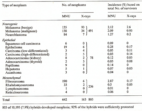Fl-hybrids develop neoplasia. Tumor incidence increases in the second