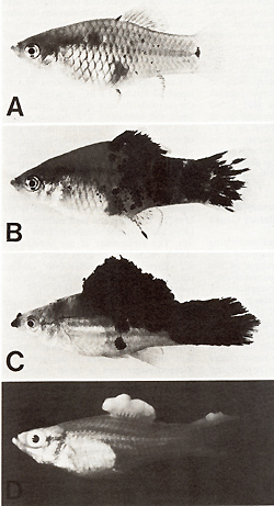 X. variatus, X. cortezi, X. helleri, and their hybrids were employed