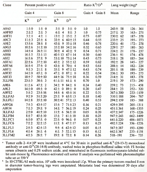 and the highmetastatic D 122 clone that expresses the H-2Db molecules
