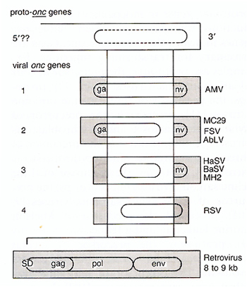 and proto-onc genes, viral onc genes have been postulated to be