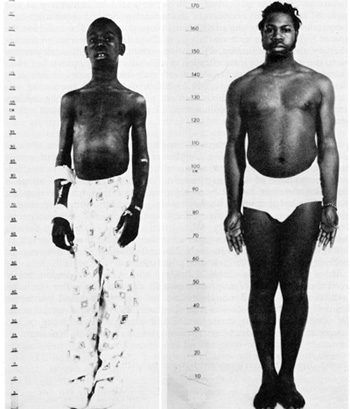 Fig.3. Patient F. G., age 13 years, had an initial white blood cell count of 225,000 per cu mm He has developed from adolescent to adult while continuously free of leukemia for 10 years. He has not received treatment for eight years