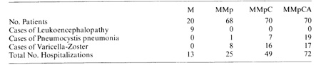 these problems, Also to be considered, however, are other neurotoxic drugs such as vincristine, asparaginase and prednisone, and the most common cause of cerebral atrophy in young children, protein-calorie malnutrition, a frequent concomitant of leukemia and its treatment. The two most important reasons why children still die of ALL are drug resistance, as manifest by hematological relapse during chemotherapy, and failure to eradicate all leukemia, as demonstrated by hematological and gonadal relapse after cessation of chemotherapy. Several approaches have been taken to reduce the risk of hematological relapse. These include the use of higher and more toxic dosages of drugs during continuation chemotherapy, the administration of intensive chemotherapy early during remission, the intermittent intensification of chemotherapy by "pulses" of additional drugs, and the utilization of cell cycle kinetic theory in designing drug treatment schedules [1,3,16, 19,20]. So far we lack convincing evidence that any of these methods decreases relapse frequency among children receiving multiple agent chemotherapy after appropriate preventive meningeal treatment. Although combination chemotherapy appeared to be superior to single drug treatment for continuing complete remission, there remained a need to demonstrate this by comparative study. It was also necessary to ascertain whether addition of drugs to a two-drug combination enhanced complete remission duration and the frequency of lengthy remissions. This question was particularly important because the drugs used for continuation chemotherapy have overlapping toxic effects on hematopoiesis, immunocompetence and epithelial integrity. Administration of one of the drugs reduces host tolerance to the others so that when used together their doses must be lower than if they were given singly. Thus, effectiveness ofone drug may be compromised by the administration of the others. In a 1972-75 study (Table 2) children with ALL were randomized to receive 1, 2, 3 or 4 drugs for continuation chemotherapy after remission induction with prednisone, vincristine and asparaginase and preventive cranial meningeal irradiation with simultaneous intrathecal methotrexate [4]. Children receiving methotrexate and mercaptopurine together had longer remissions and abetter chance of lengthy remission than those