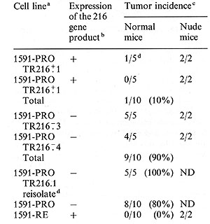 of the 216 gene into progressively growing 1591 tumor variants leads