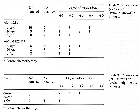(Tables 2,3). The c-myc transcripts were detected but the N-ras and